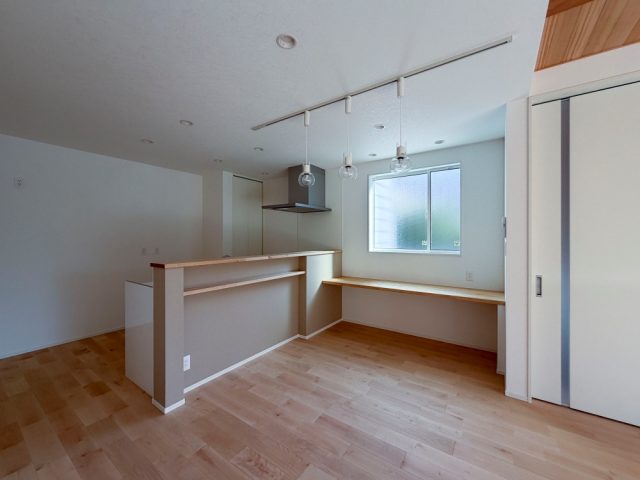 ダイニング脇には木のカウンターを設け、