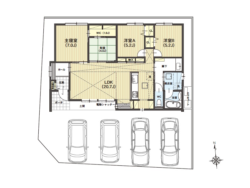 D棟:家族みんなが暮らしやすい実用性の高い4LDKの平屋