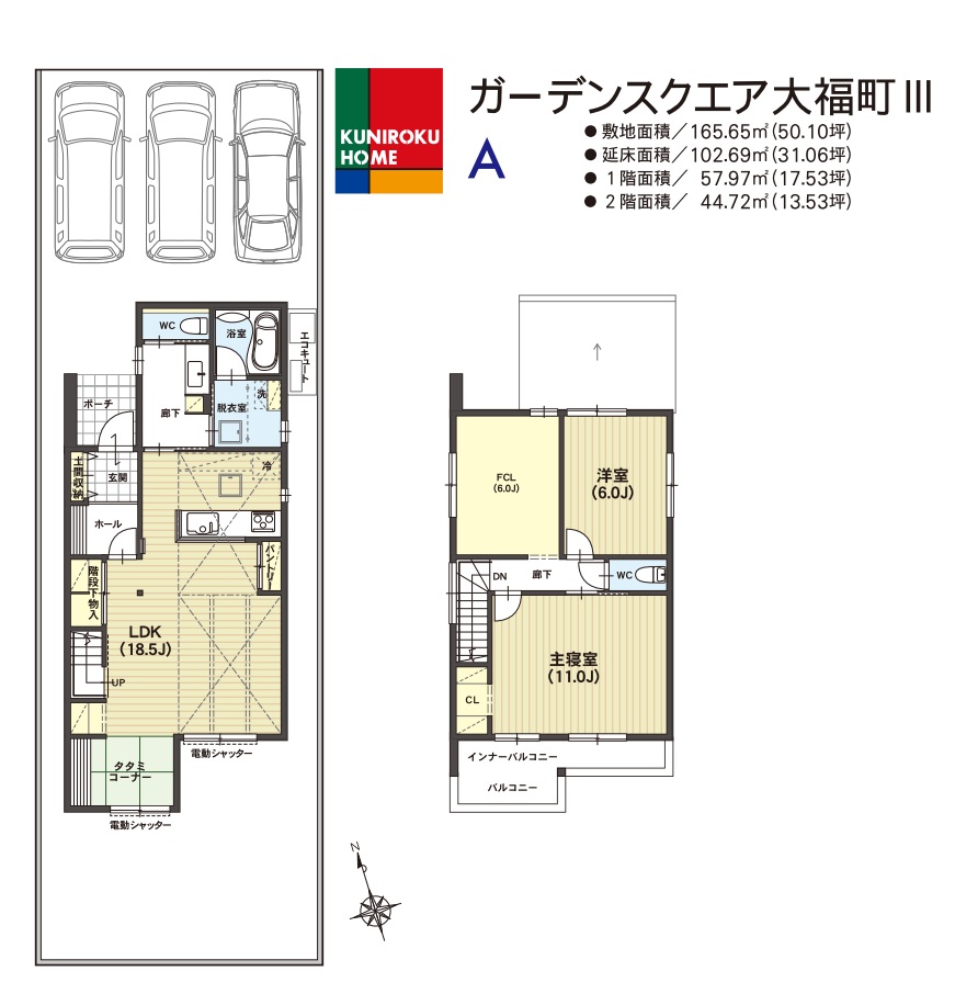 | 分譲価格 | 3,480万円(土地+建物+外構+消費税 10%込み) |