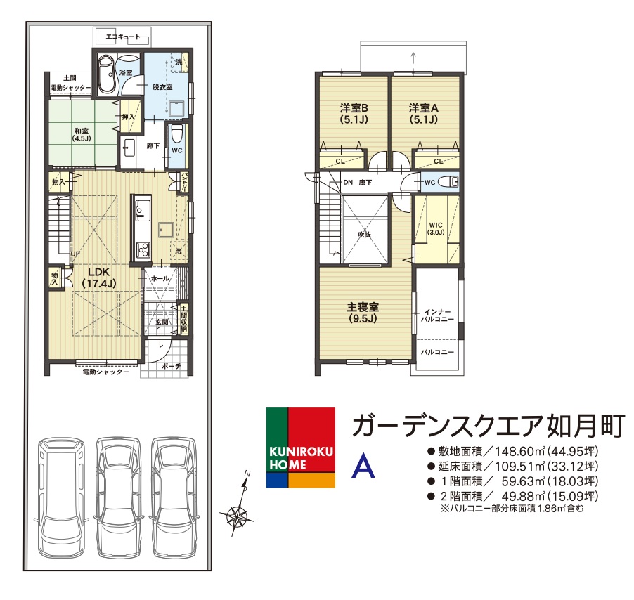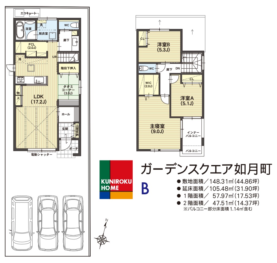 | 分譲価格 | A:4,180万円 B:4,150万円(土地+建物+外構+消費税10%込み) |